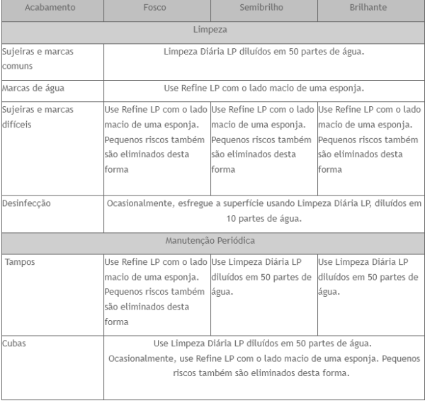 Atenção: Materiais compostos por mármores, caso dos Aglostone e dos Marmostone, são mais macios e mais sensíveis a ataques químicos. A correção de seu polimento, quando desgastado ou danificado, será realizada com Pek Marmo.