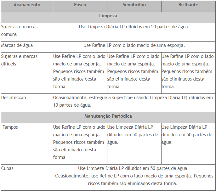 É a nossa compreensão de como um Corian® ou similar deve ser tratado e mantido.